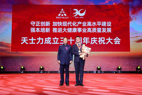 上午9時,慶祝大會在國際交流展示中心大禮堂隆重召開。天士力生物醫(yī)藥產(chǎn)業(yè)集團有限公司黨委書記、董事長閆凱境作《韌性馭變、創(chuàng)新求通、數(shù)智致勝——天士力領(lǐng)航2030戰(zhàn)略》報告,天士力創(chuàng)始人、天士力集團董事局終身榮譽主席、天士力數(shù)智健康產(chǎn)業(yè)集團董事長閆希軍作《創(chuàng)新求通,堅定信念,接續(xù)奮斗,開創(chuàng)天士力大健康產(chǎn)業(yè)新輝煌》主題報告,天士力創(chuàng)始人、天士力集團董事局終身榮譽主席、天士力大健康產(chǎn)業(yè)投資集團總經(jīng)理吳迺峰,天士力大健康產(chǎn)業(yè)投資集團常務(wù)副總經(jīng)理張建忠出席大會,天士力生物醫(yī)藥產(chǎn)業(yè)集團有限公司黨委副書記、總裁朱永宏宣讀天士力功勛評定與授勛等表彰決定。大會由天士力生物醫(yī)藥產(chǎn)業(yè)集團有限公司常務(wù)副總裁周波主持,采取現(xiàn)場參會與線上參會同期的方式進行,來自國內(nèi)外科研、生產(chǎn)、營銷、資本、服務(wù)等員工代表在津參會,集團駐外地產(chǎn)業(yè)基地和經(jīng)營機構(gòu)員工同步視頻參會。