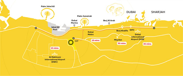園區(qū)位于阿聯(lián)酋兩大酋長國迪拜和阿布扎比的交界處