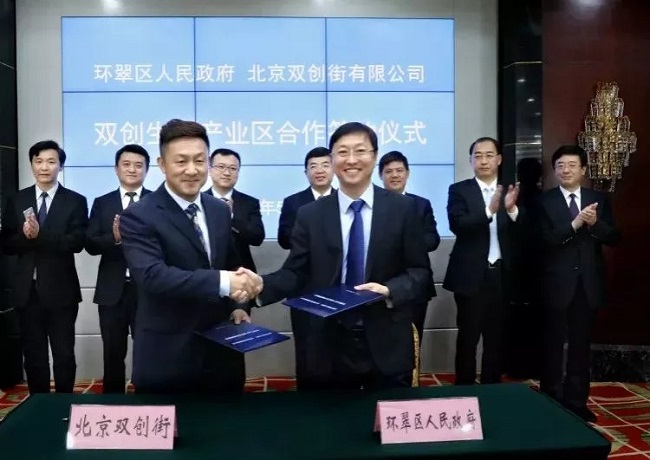 The Secretary of the Huancui District Mr. Zhang Hongpu delivered a speech. The mayor Xu Ming presided over the ceremony. Zhang Wei and Wang Dazhi signed contracts on behalf of the municipal and district governments. Chairman of THTI Holdings, Chairman of Beijing Double Creative Street Investment Cheng Fang, Senior Vice President of THTI Holdings, and Miao Yingwei, Managing Director of Beijing Double Creation Street Investment, Xiao Runmin, Investment Supervisor of Beijing Shuangchuang Street, and Principal Leaders of the relevant departments of the district attended the ceremony.